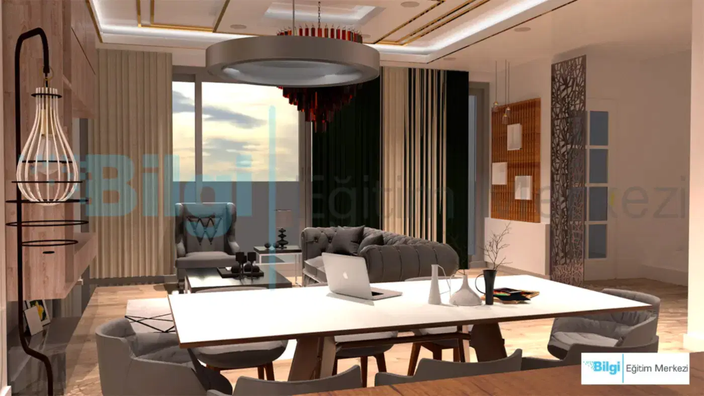 - Vray kursları kapsamında iç mekanlarda final render setup ayarlarının yapılıp sahnenin render edilerek, resim olarak kaydedilmesi