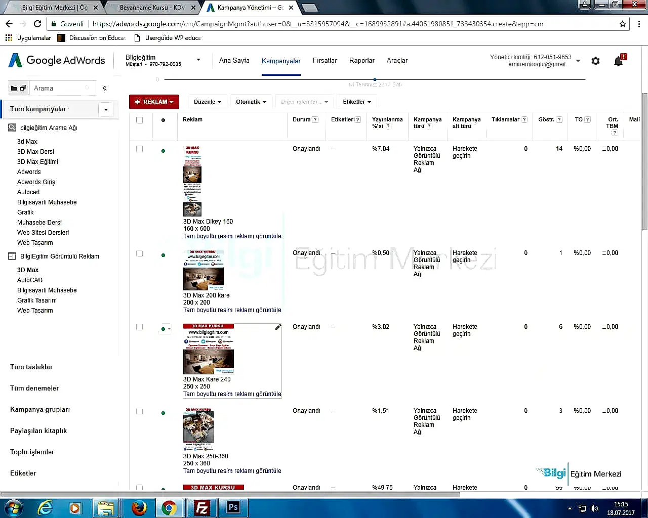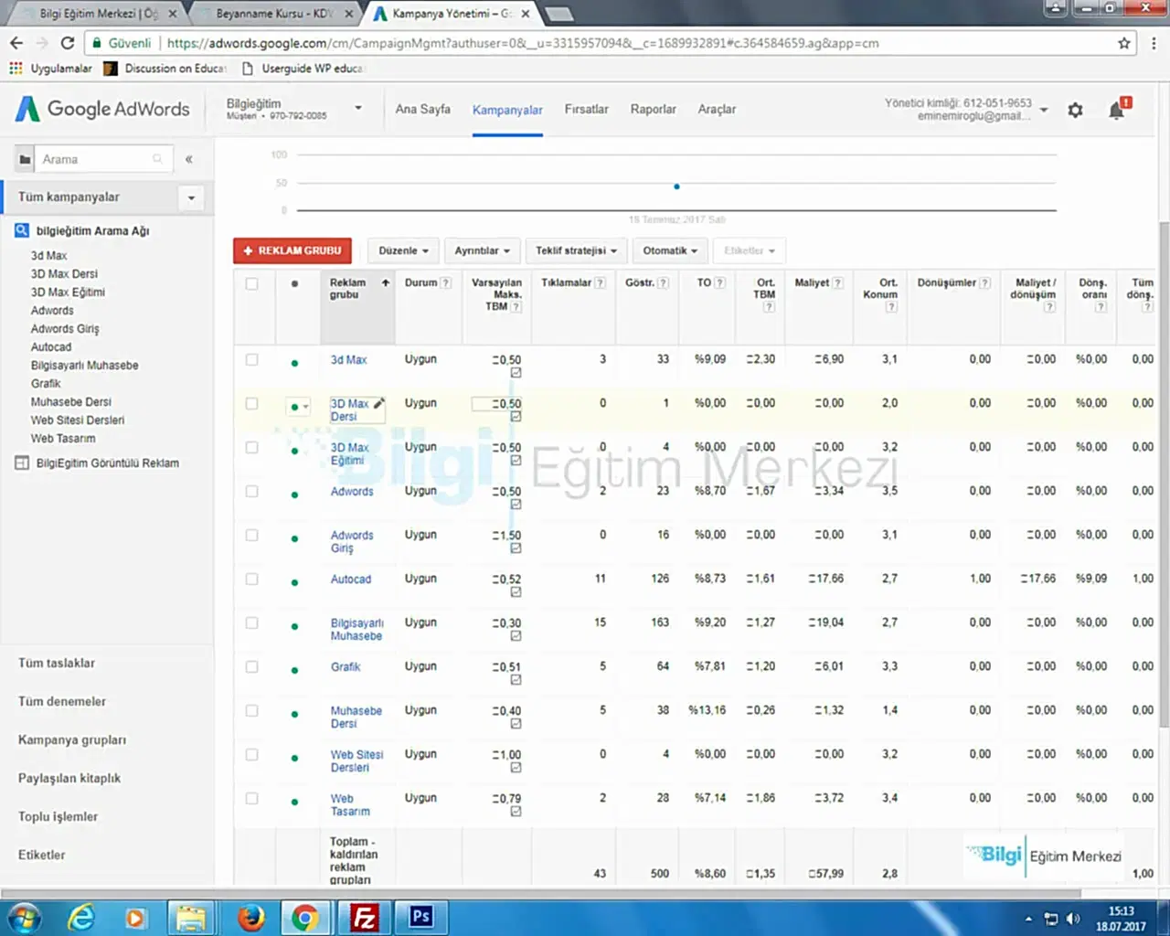 Bilgi eğitim merkezi ne gelmeden önce, saadet hanımla görüştüm. Eğitmen hakkı hocayla tanıştırdı, İlk önceleri tedirgindim, hakkı hocanın açık ve net bilgileri beni ikna etti. Google Adwords eğitimi almaya başladım çok memmun kaldım ve artık adwords de hesabımı kendim yönetebiliyorum tavsiye ederim ve çok şey öğrendim çok teşekkür ederim. Korkmazlar mühendislik