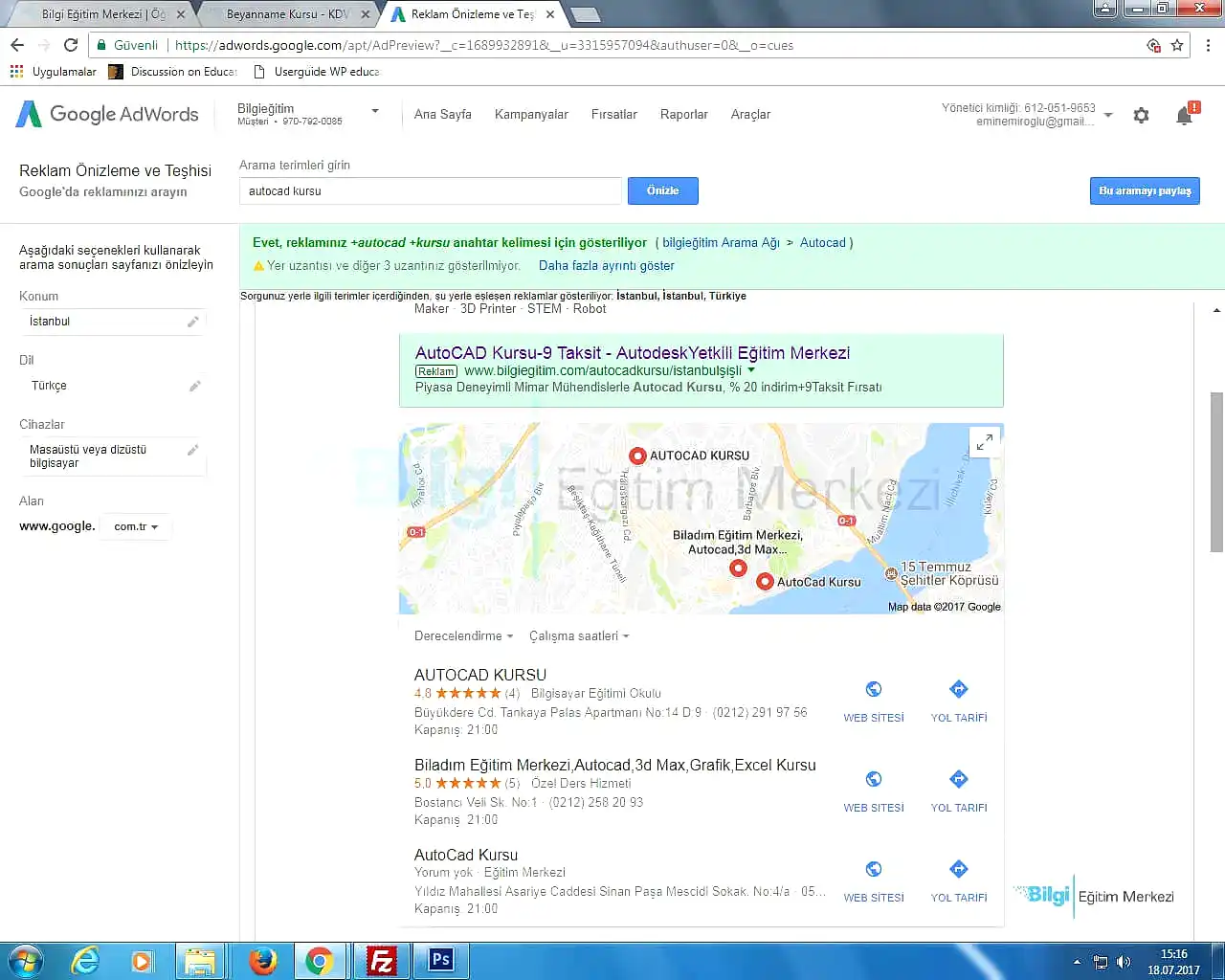 - Google My Business hesabımızdaki yer ve işletme bilgilerinin adwors reklamında görünmesini sağlama