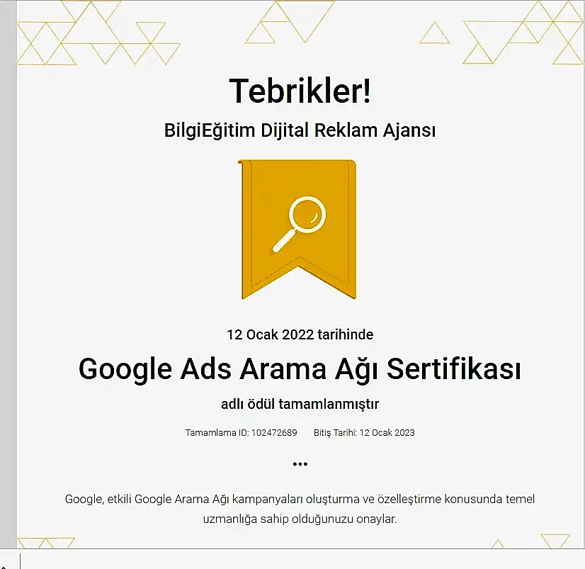 - Google Adwords Sertifikası'nın geçerlilik süresi